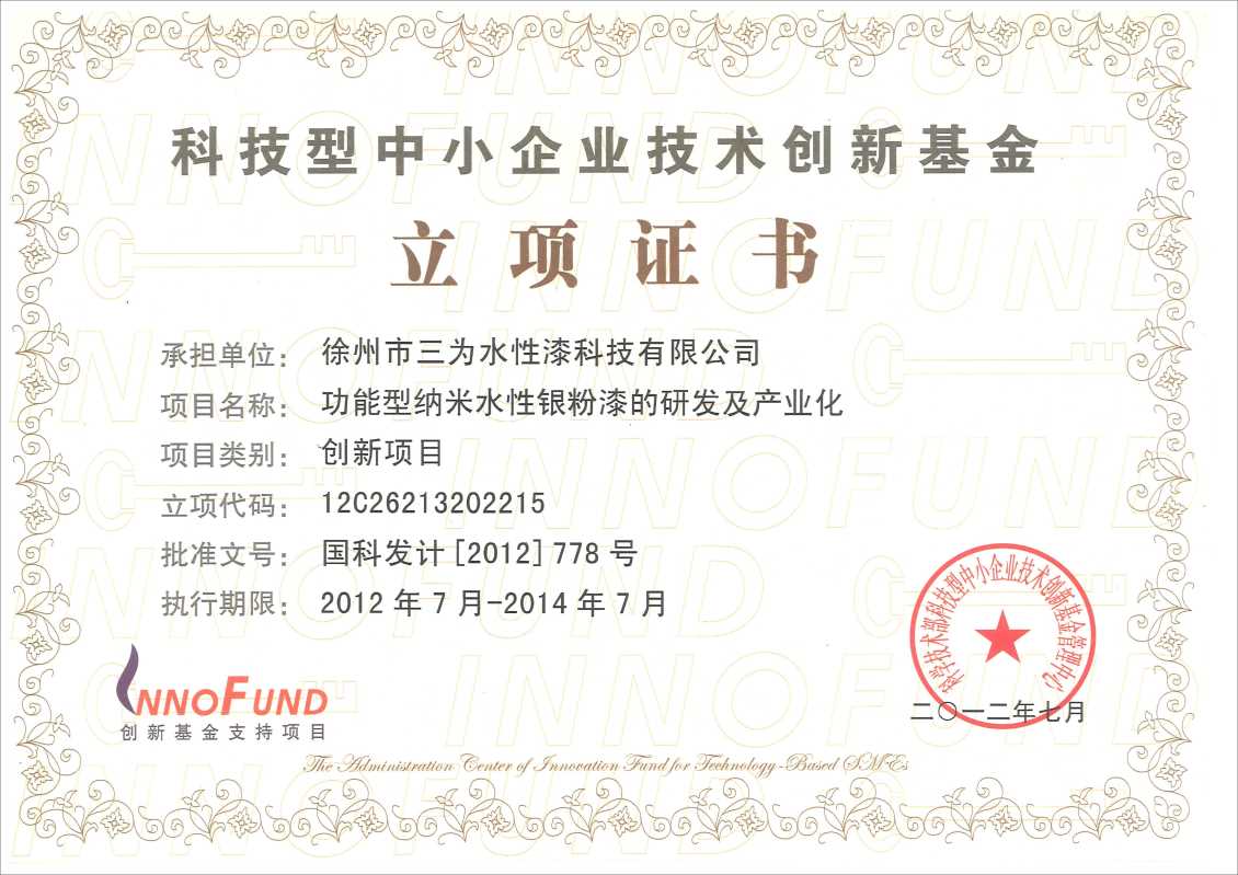 徐州市水性漆厂成立于1990年,产品自主研发填补国内水性工业空白。徐州市三为水性漆科技有限公司与中国矿业大学联合成立水性漆研发中心,从韩国尚庆大学引进国际纳米学者博士后姜继森教授为我公司技术总经理,专注水性纳米应用。三十余年来硕果累累,先后承接两 次 国 家 级 星火计划,中小企业技术创新基金,多项国家发明专利授权并在国家专利局“国际专利博览会”国际专利博览会中荣获创新奖与金奖,全国军民融合企业,《CCTV工匠精神》企业,国家生产力促进中心评为中国好技术,获“中国节能环保创业应用大赛”创新应用奖,中国企业诚信经营示范单位,江苏省民营科技企业,中船重工涂装专业委员会成员,《中国修船》编委,多次在 国 家 级 期刊发布学术论文,通过中国船级社检测,通过中国铁道部科学院检测。?