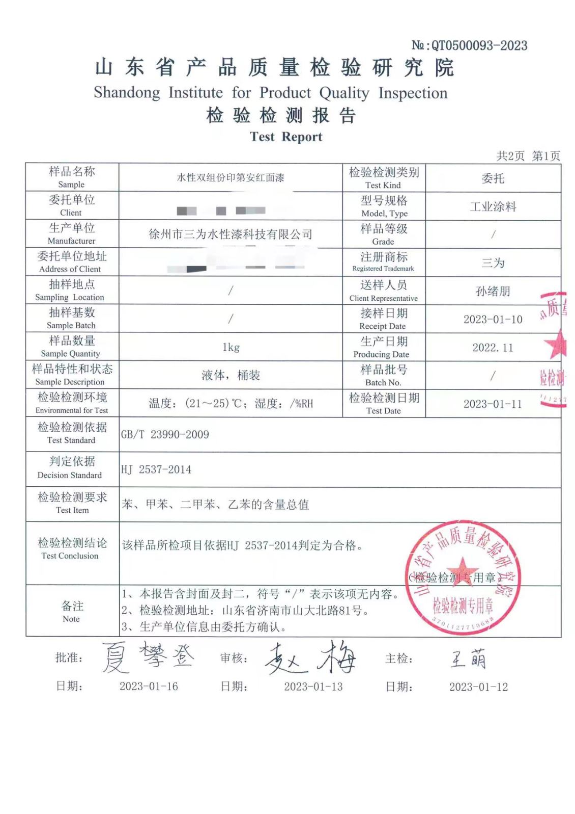 徐州市水性漆厂成立于1990年,产品自主研发填补国内水性工业空白。徐州市三为水性漆科技有限公司与中国矿业大学联合成立水性漆研发中心,从韩国尚庆大学引进国际纳米学者博士后姜继森教授为我公司技术总经理,专注水性纳米应用。三十余年来硕果累累,先后承接两 次 国 家 级 星火计划,中小企业技术创新基金,多项国家发明专利授权并在国家专利局“国际专利博览会”国际专利博览会中荣获创新奖与金奖,全国军民融合企业,《CCTV工匠精神》企业,国家生产力促进中心评为中国好技术,获“中国节能环保创业应用大赛”创新应用奖,中国企业诚信经营示范单位,江苏省民营科技企业,中船重工涂装专业委员会成员,《中国修船》编委,多次在 国 家 级 期刊发布学术论文,通过中国船级社检测,通过中国铁道部科学院检测。?